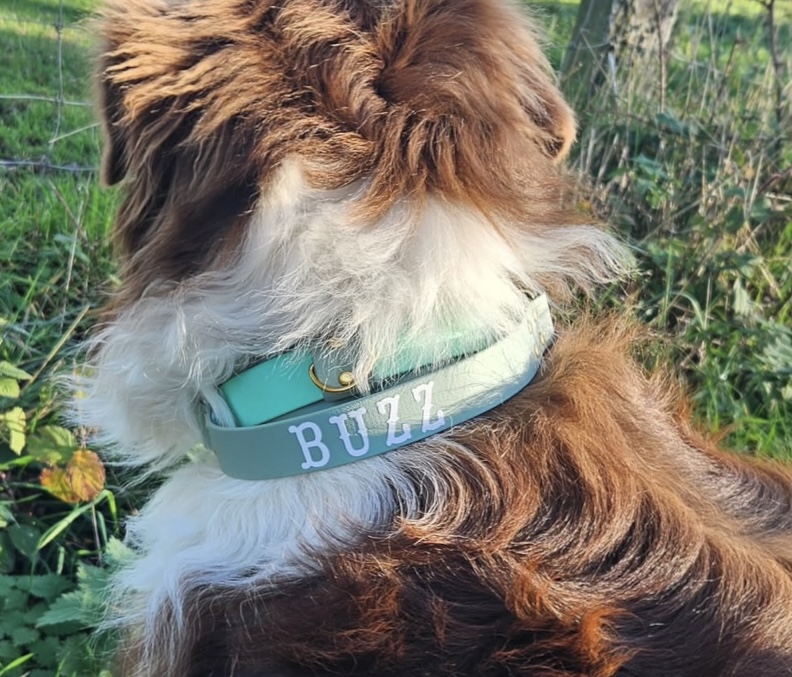 "Qualité au top, beaucoup de couleurs & personnalisation parfaite! Collier & laisse magnifiques, ma chienne les porte à merveille🐾"