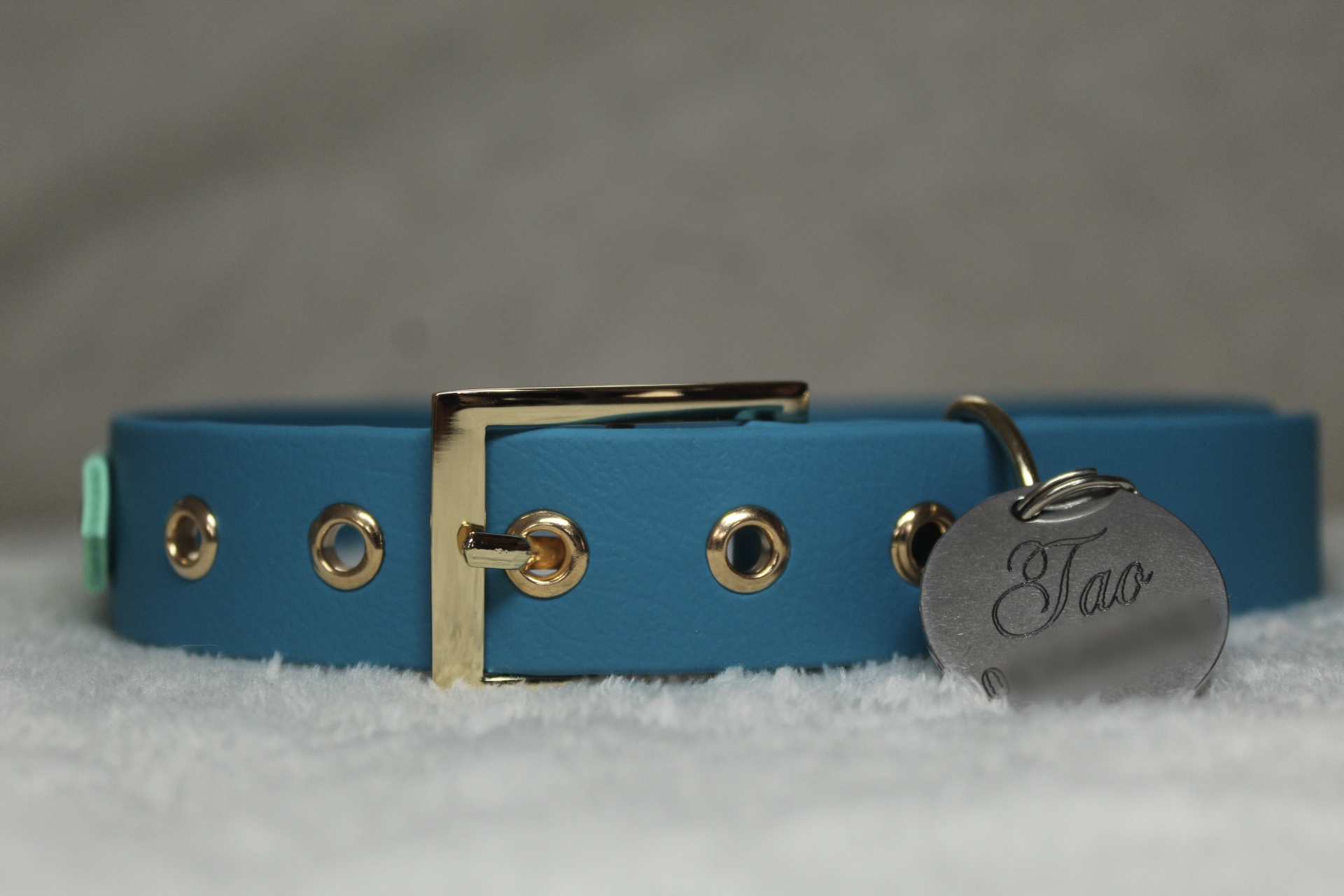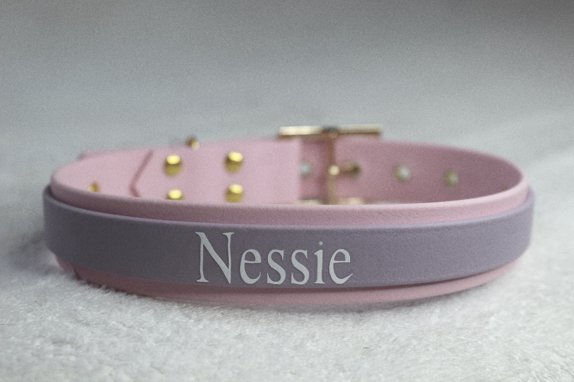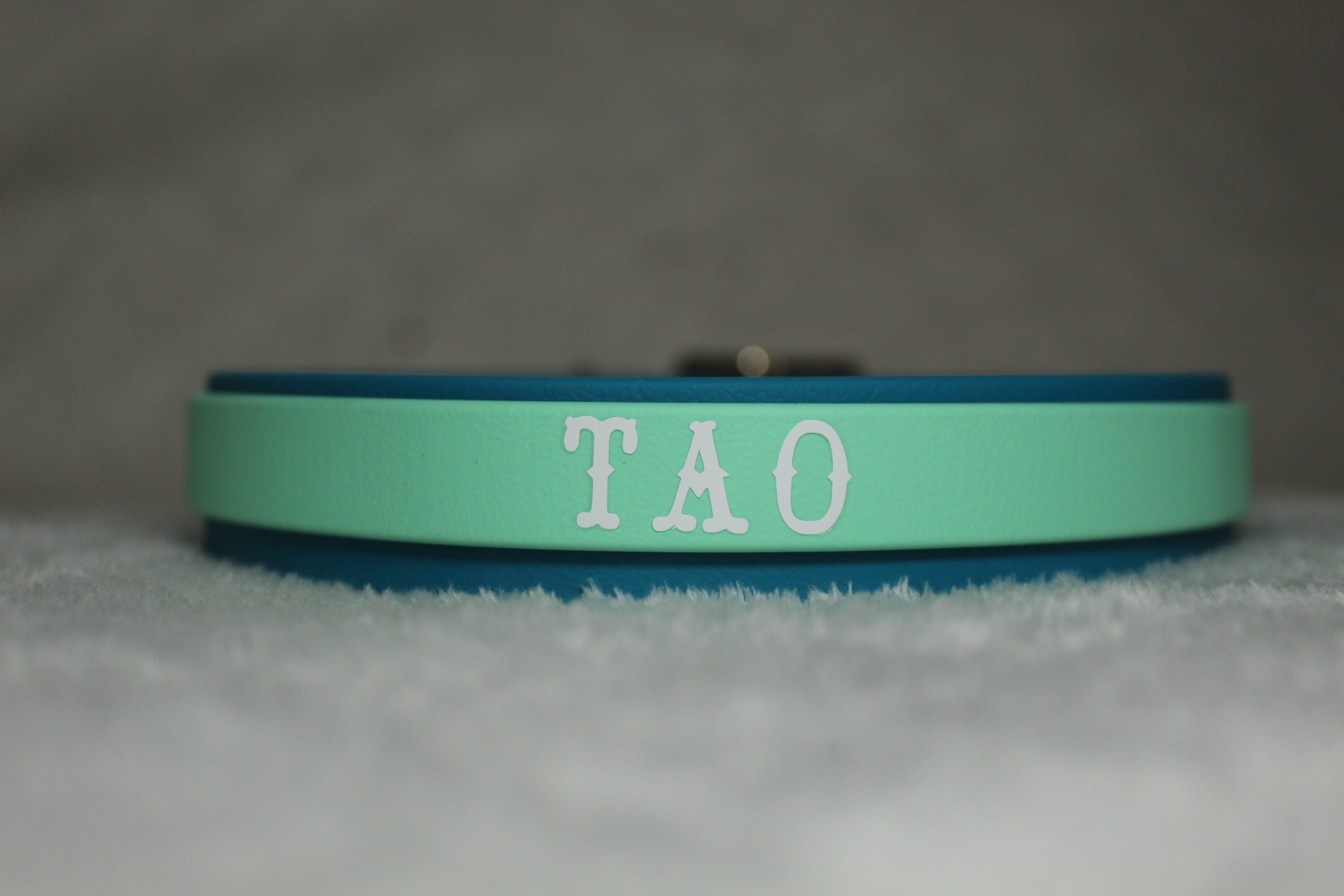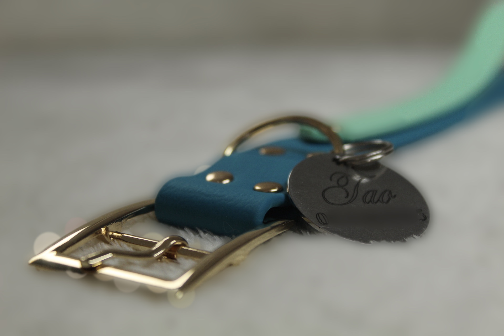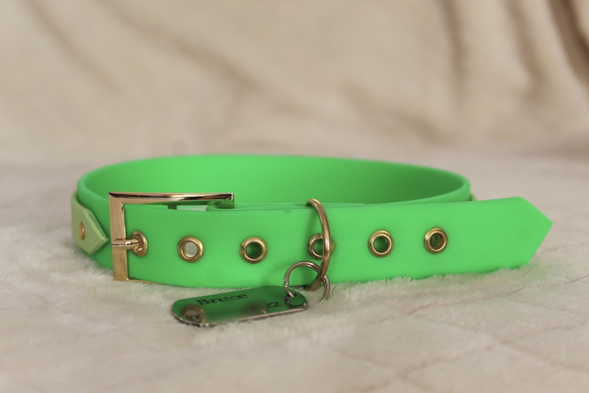 Collier bicolore réglable alliant style & résistance, composé de 2 bandes de biothane superposées: