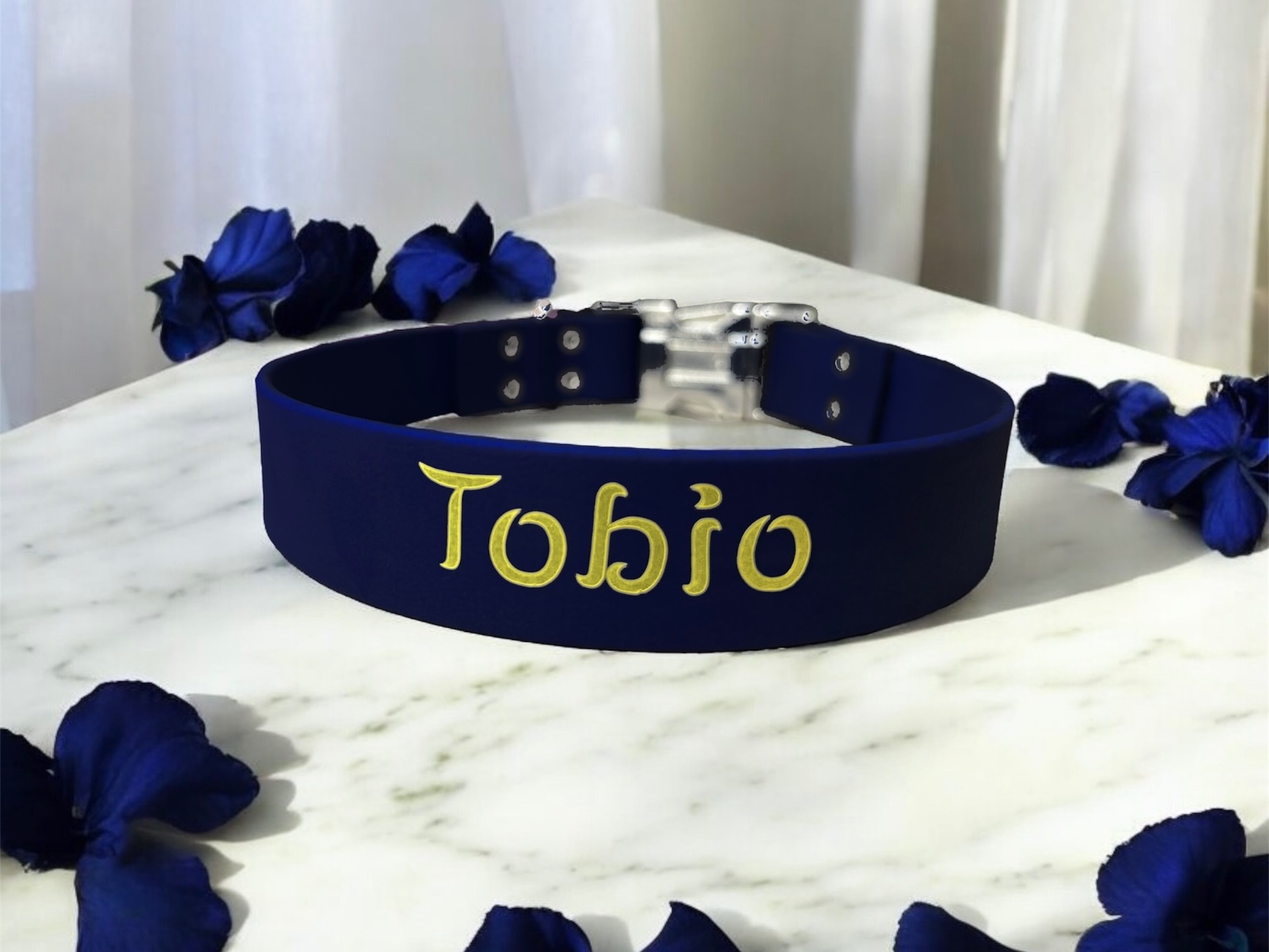 Chaque collier est réalisé avec soin, dans un matériau imperméable, le biothane, résistant et facile à entretenir, parfait pour accompagner votre compagnon dans toutes ses aventures.