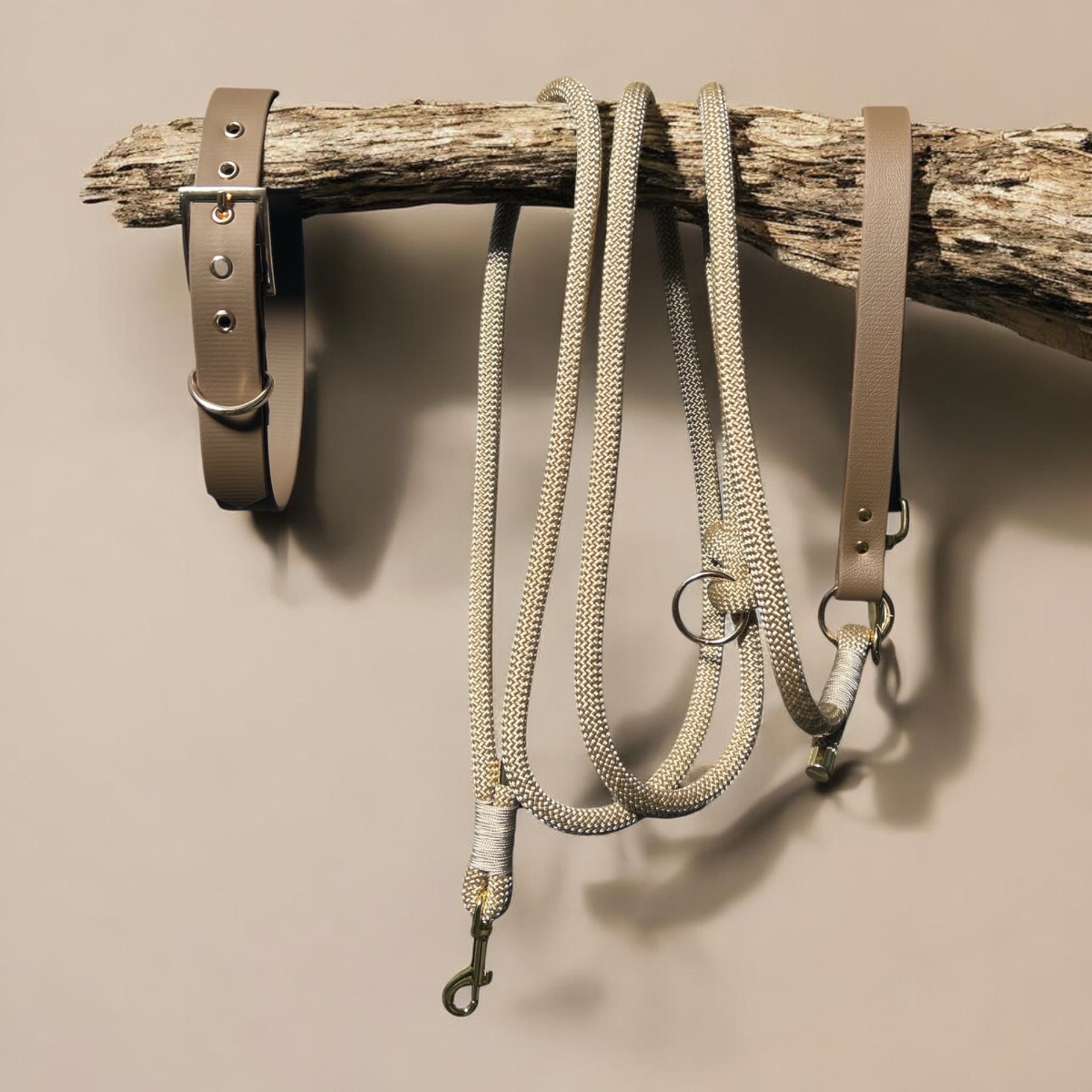 La laisse Hermès est également multiposition, ce qui vous permet de l'adapter selon vos besoins. La partie poignée peut se décrocher, offrant encore plus de modularité et de possibilités d'utilisation selon votre manière de promener votre chien: