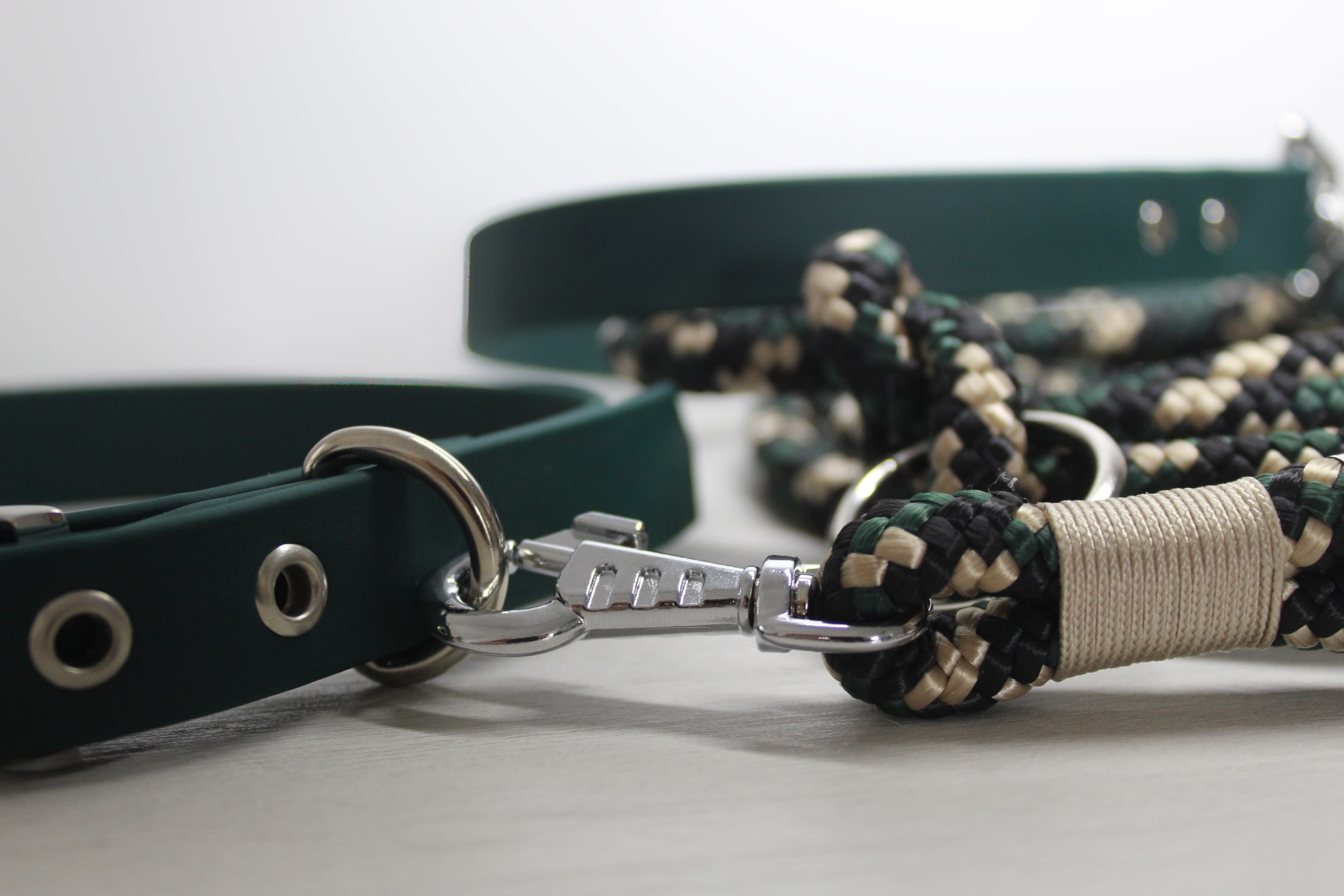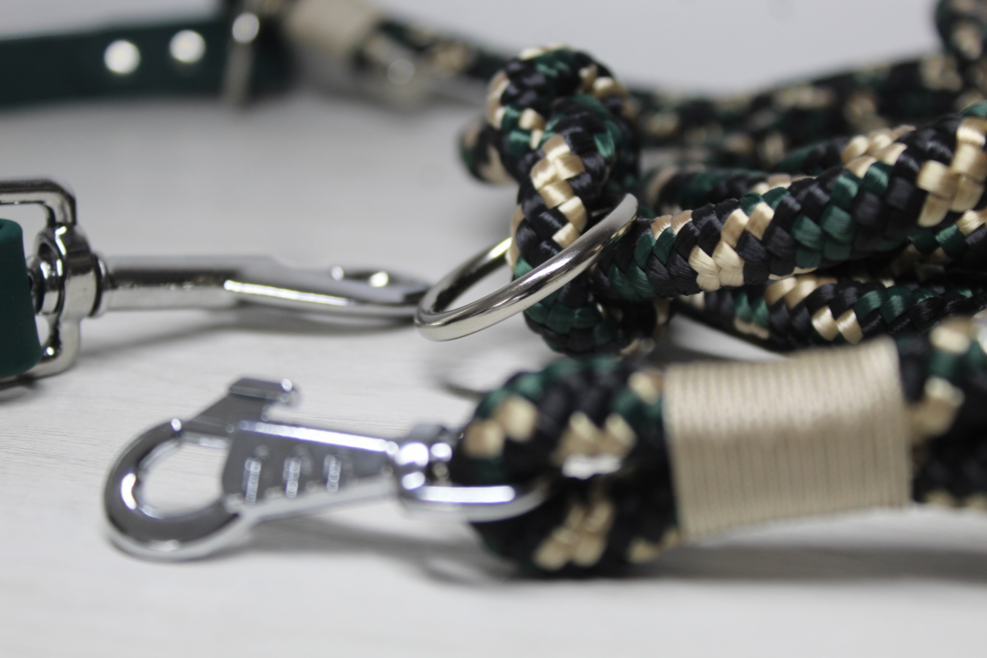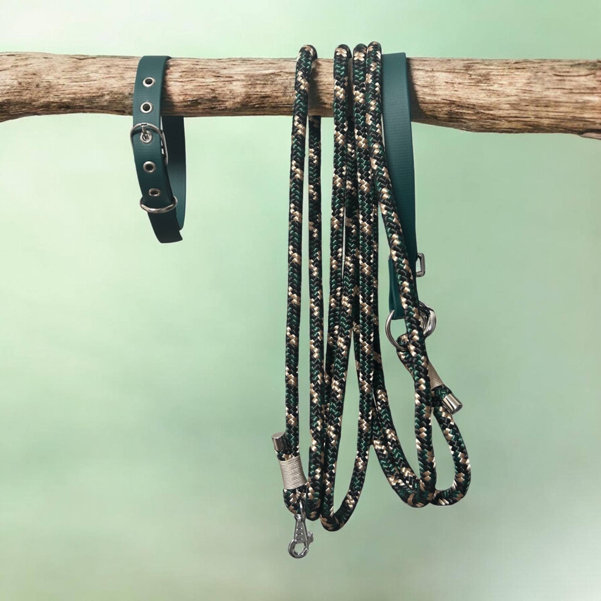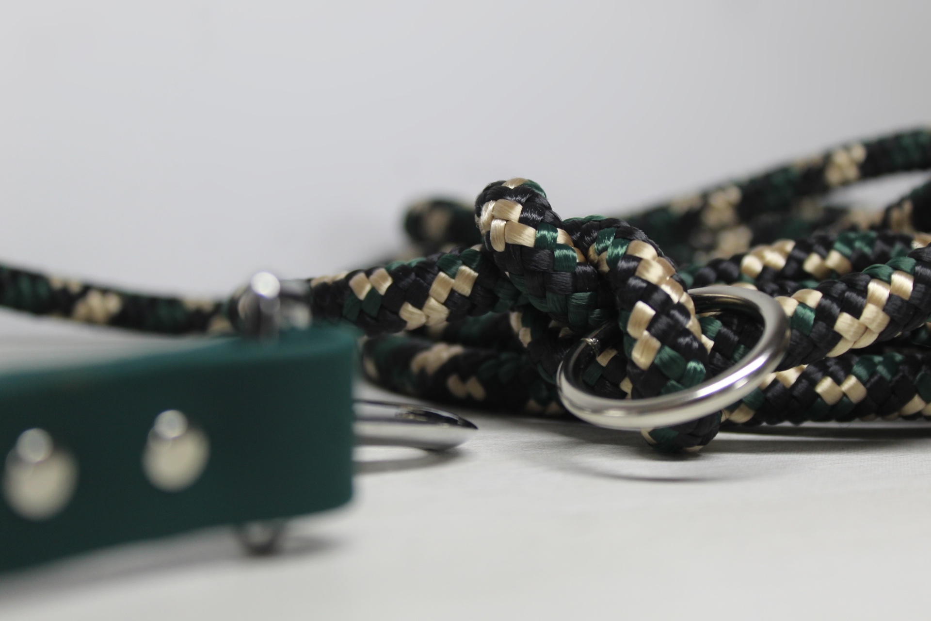 Le modèle Loki est conçu avec une corde PPM aux tons camouflages de 1cm de largeur, à la fois résistante, souple & agréable en mains qui rappelle les profondeurs marines et les rivages sableux. Sa poignée en biothane Vert sapin apporte un excellent confort de prise tout en ajoutant un touche de style unique.