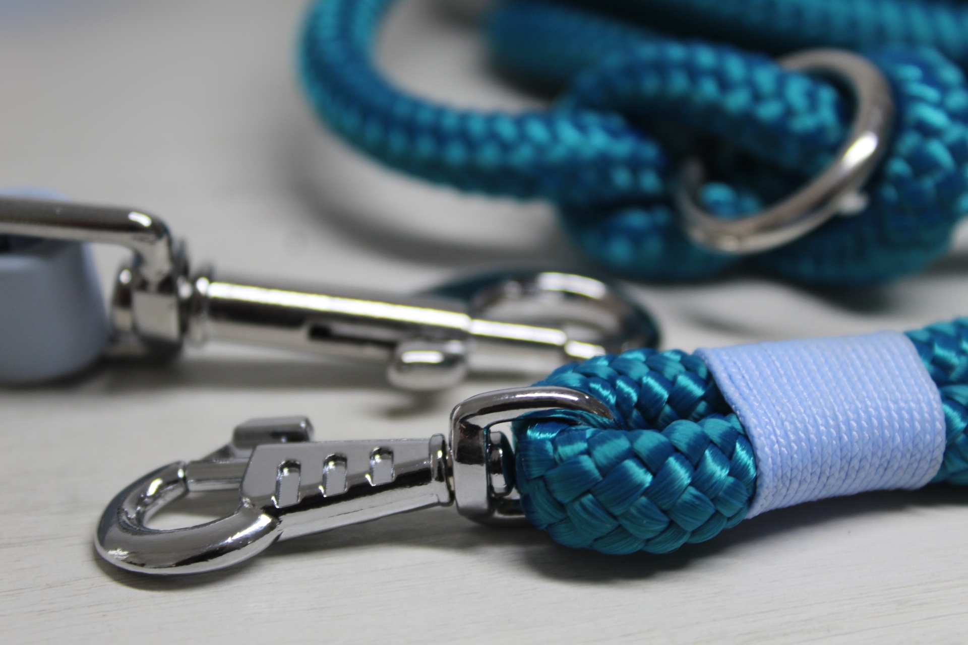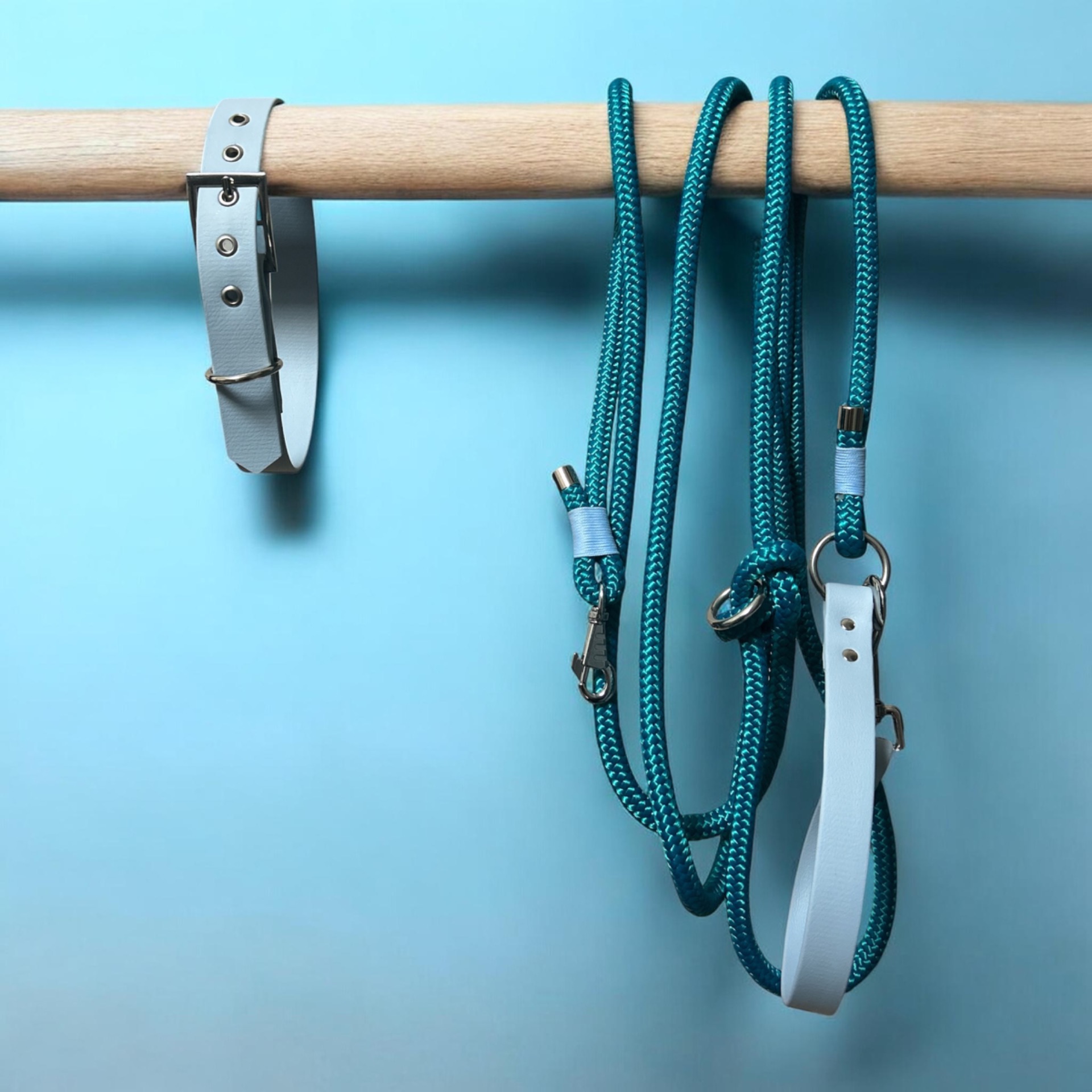Le modèle Poséidon est conçu avec une corde PPM Bleu Lagon de 1cm de largeur, à la fois résistante, souple & agréable en mains. Sa poignée en biothane Bleu pastel apporte un excellent confort de prise tout en ajoutant un touche de style unique.