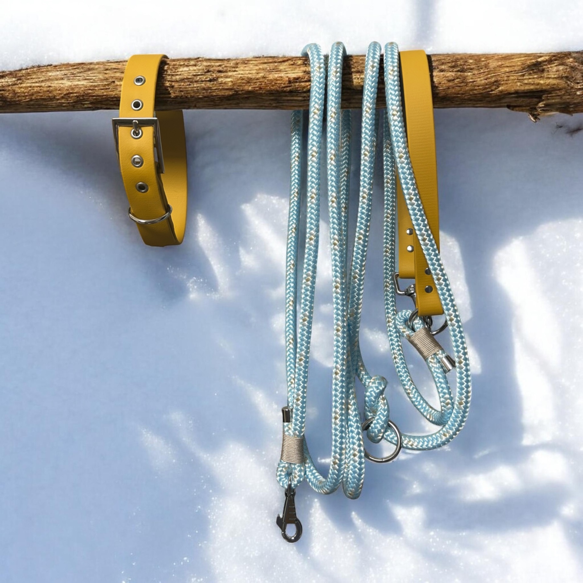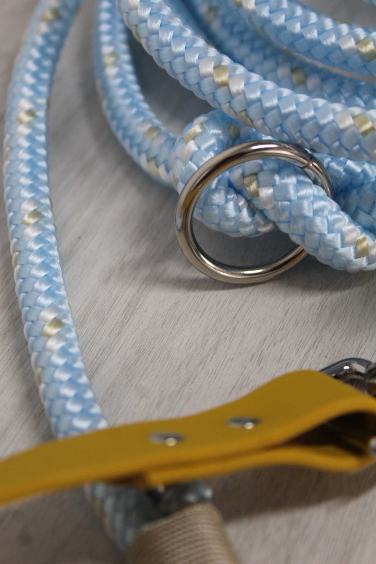 Le modèle Skadi est conçu avec une corde PPM aux tons clairs de 1cm de largeur, à la fois résistante, souple & agréable en mains qui rappelle le froid des paysages montagneux. Sa poignée en biothane Jaune Moutarde apporte un excellent confort de prise tout en ajoutant un touche de style unique.