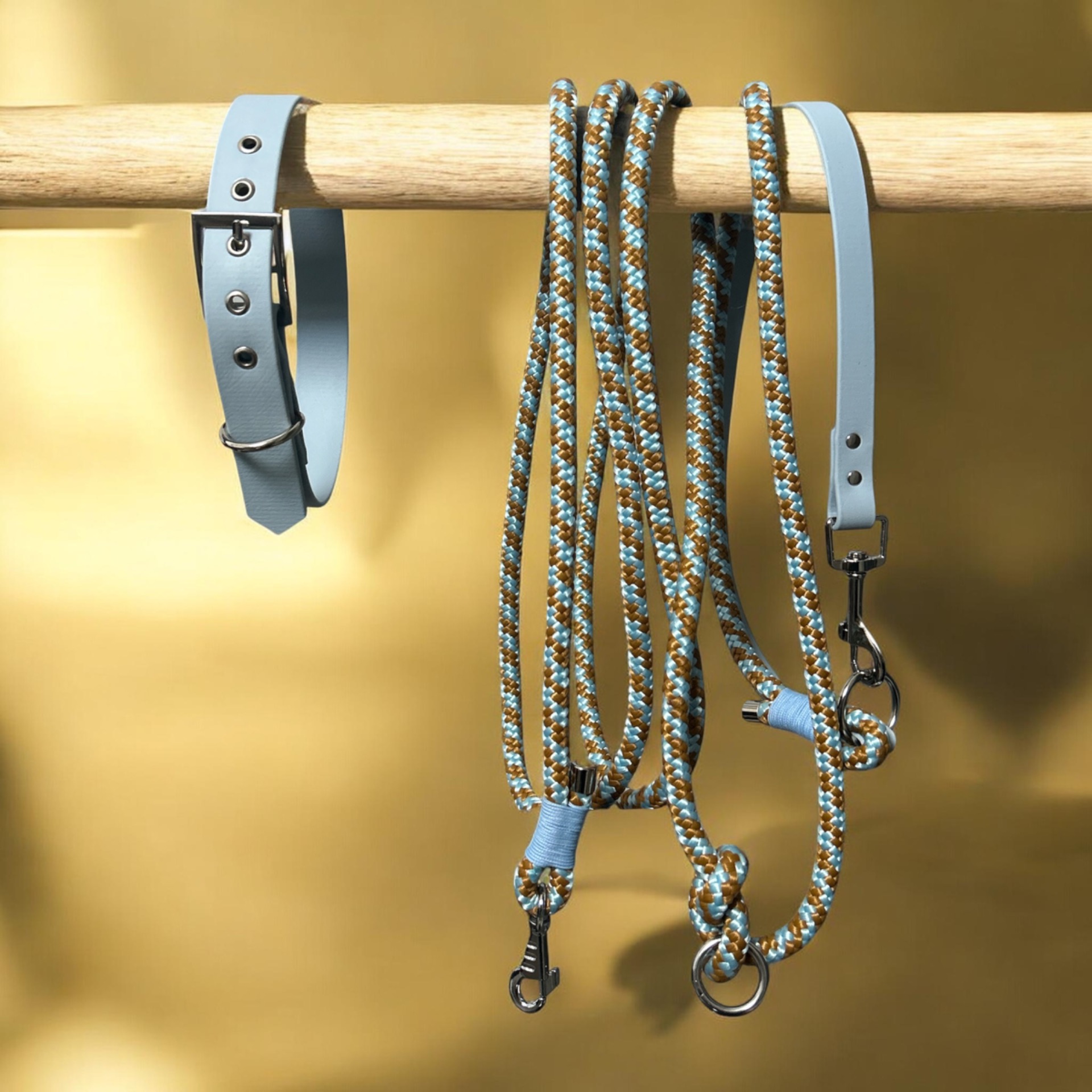 Robuste, pratique et élégante, la laisse Sol a été pensée pour les propriétaires qui recherchent un accessoire à la fois fonctionnel, durable et esthétique.